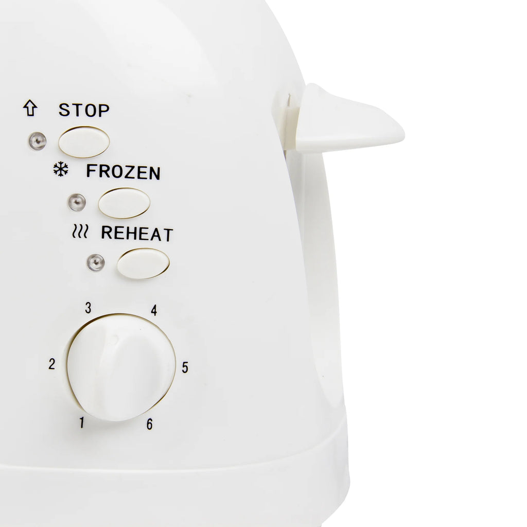 This stylish 4 slice white toaster features extra long slots to accommodate a total of 4 slices of bread, as well as stop, frozen and reheat buttons for convenience. The variable browning control dial means toasting the perfect slice is simple, and no unnecessary mess with the removable crumb tray.